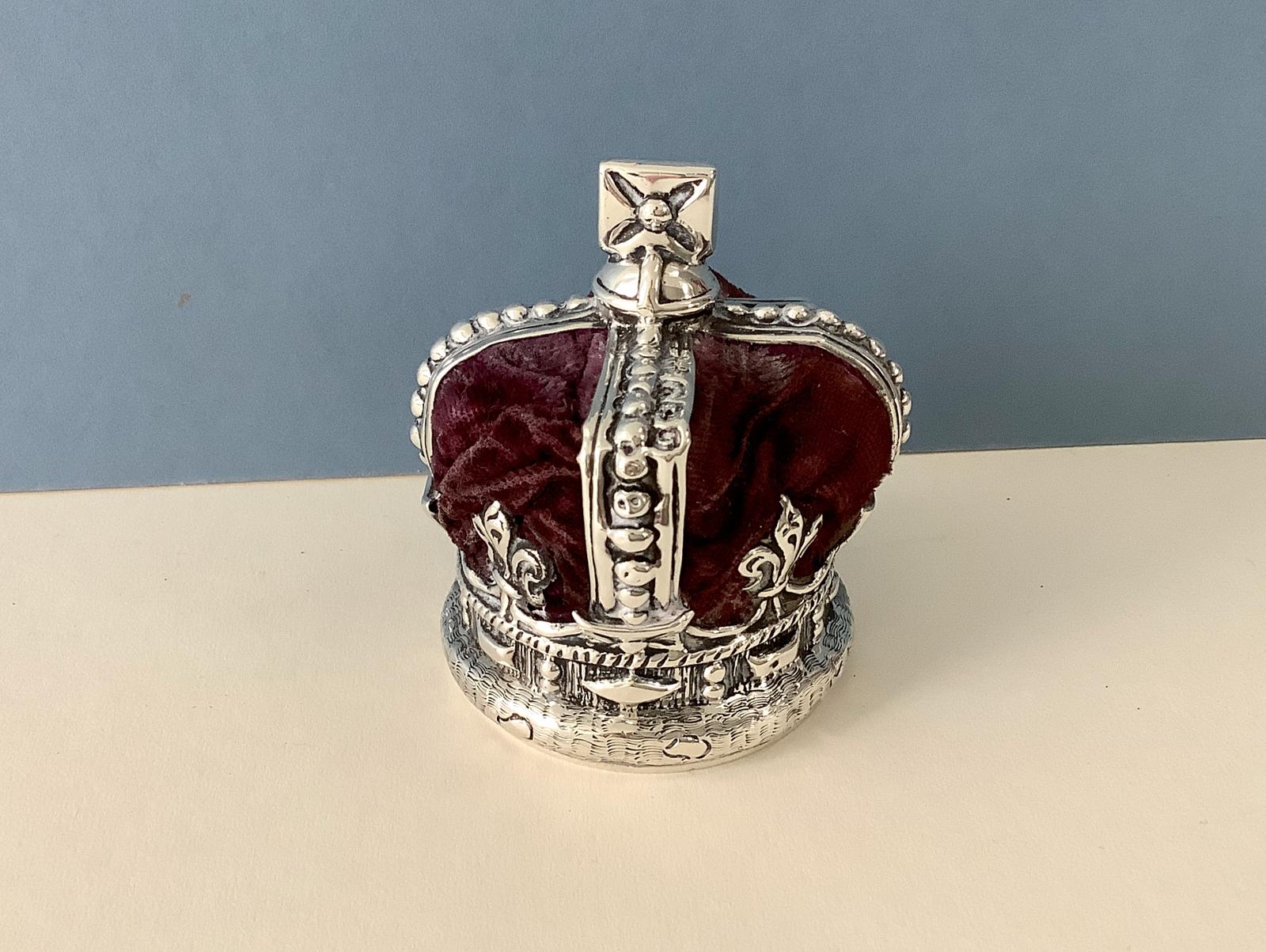 Antique Victorian Solid Silver Pin Cushion - Crown