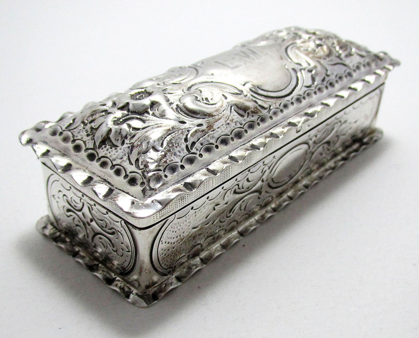 Antique Victorian Solid Sterling Silver English Snuff Pill Box Tobacco Trinket Case Tin 1895