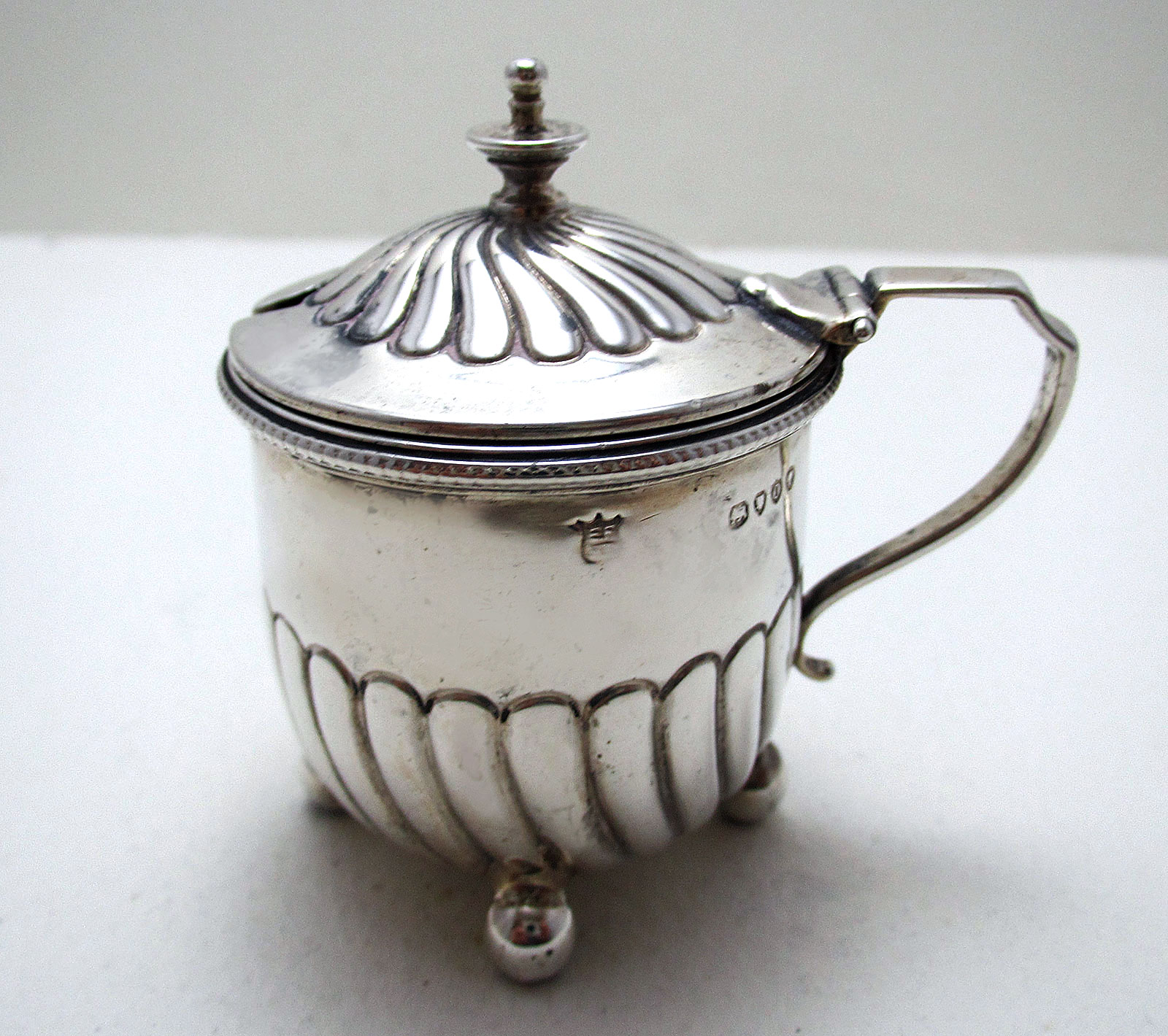 Antique Victorian Solid Sterling Silver Fluted Mustard Pot Cruet. English Birmingham Hallmarked 1889