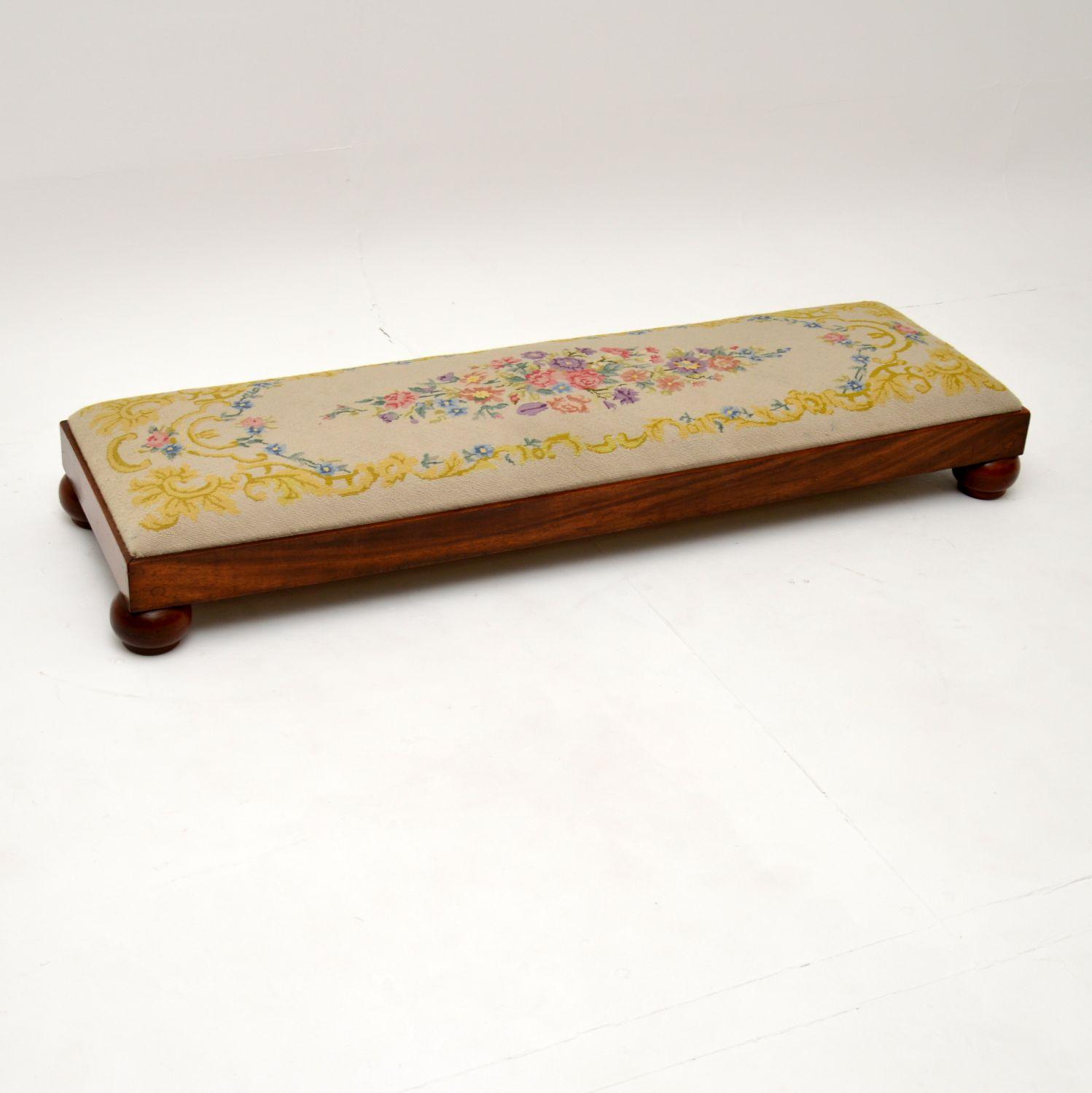 Antique Victorian Solid Walnut Needlepoint Foot Stool
