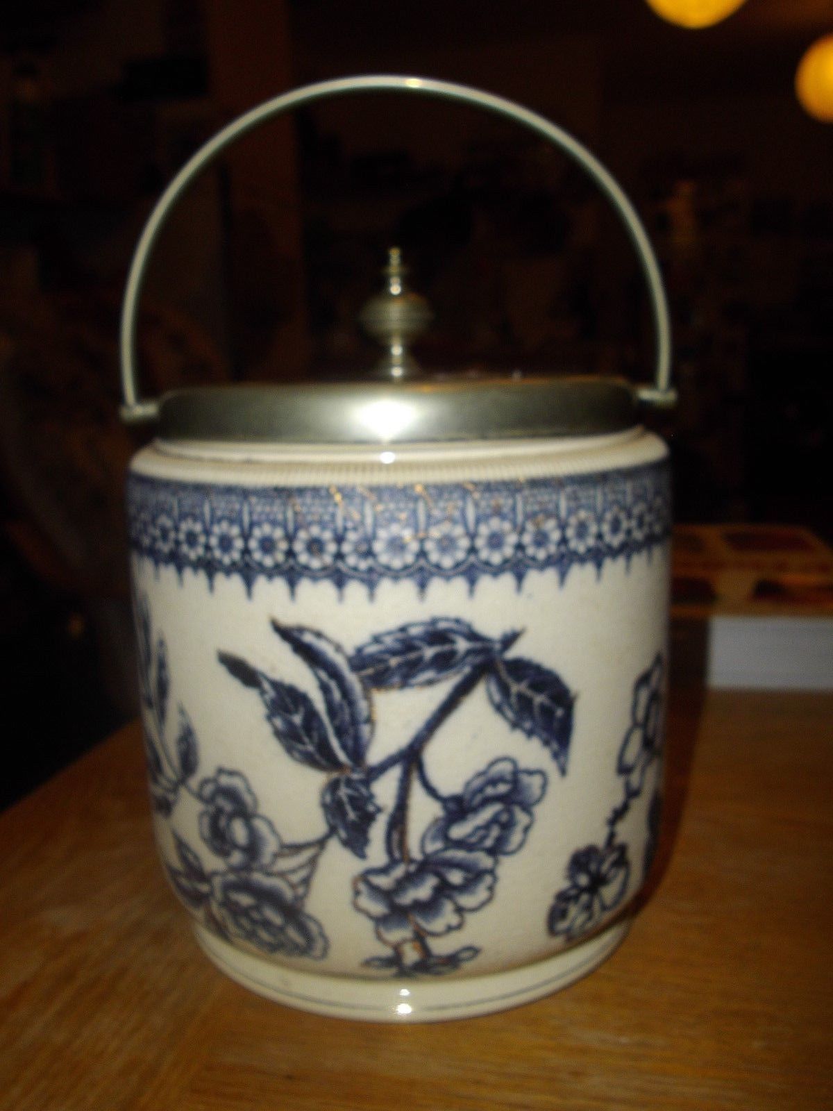Antique Victorian Staffordshire Pottery & Silver Plated Biscuit Barrel c.1890 (1 of 4)