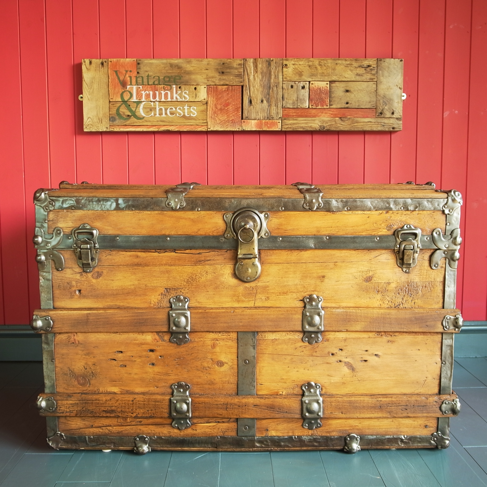 Antique Victorian Steamer Trunk Storage Chest Blanket Box