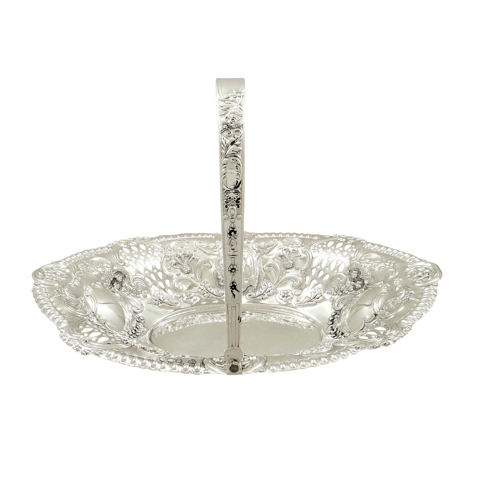 Antique Victorian Sterling Silver 10" Basket 1900