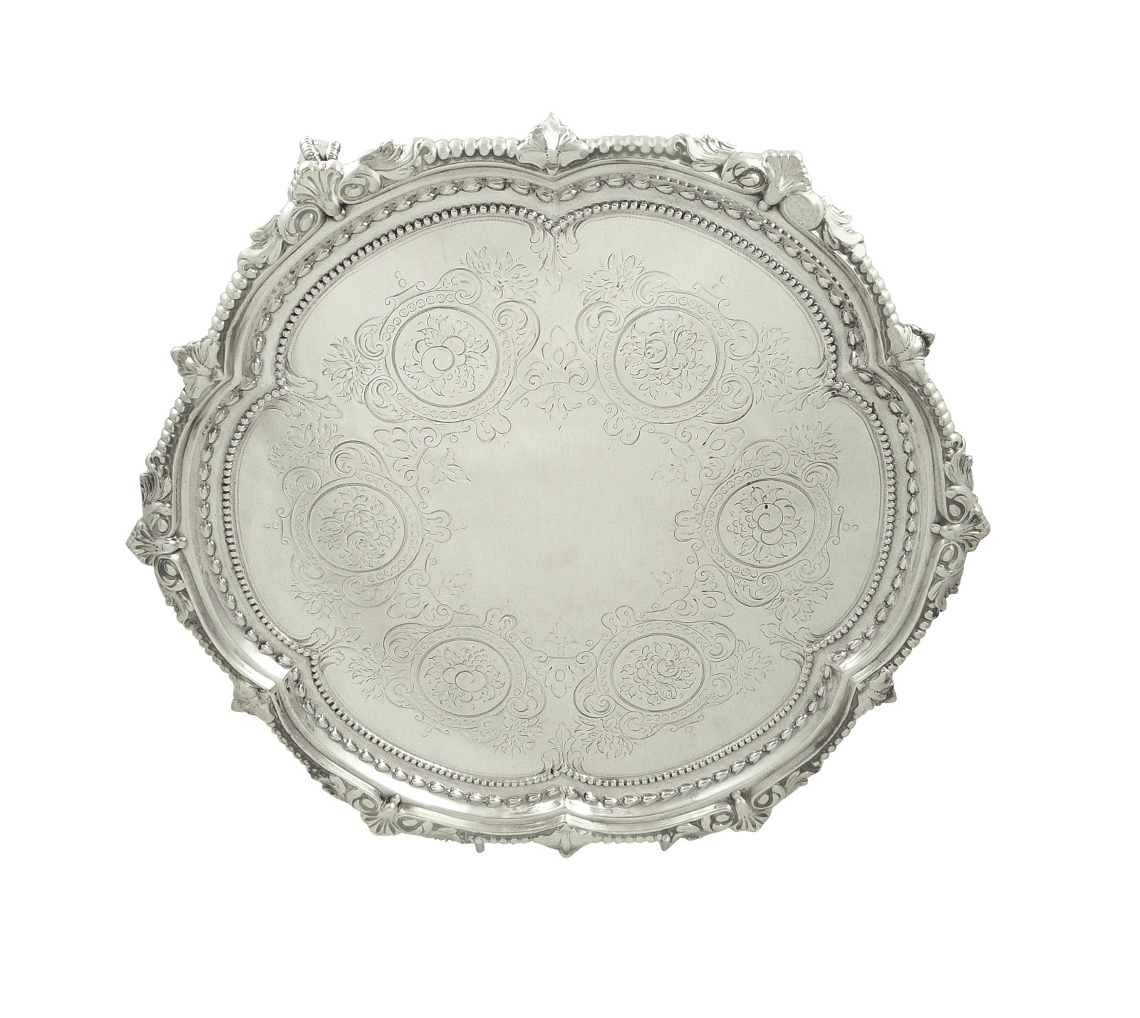 Antique Victorian Sterling Silver 12 1/2" Tray / Salver 1867