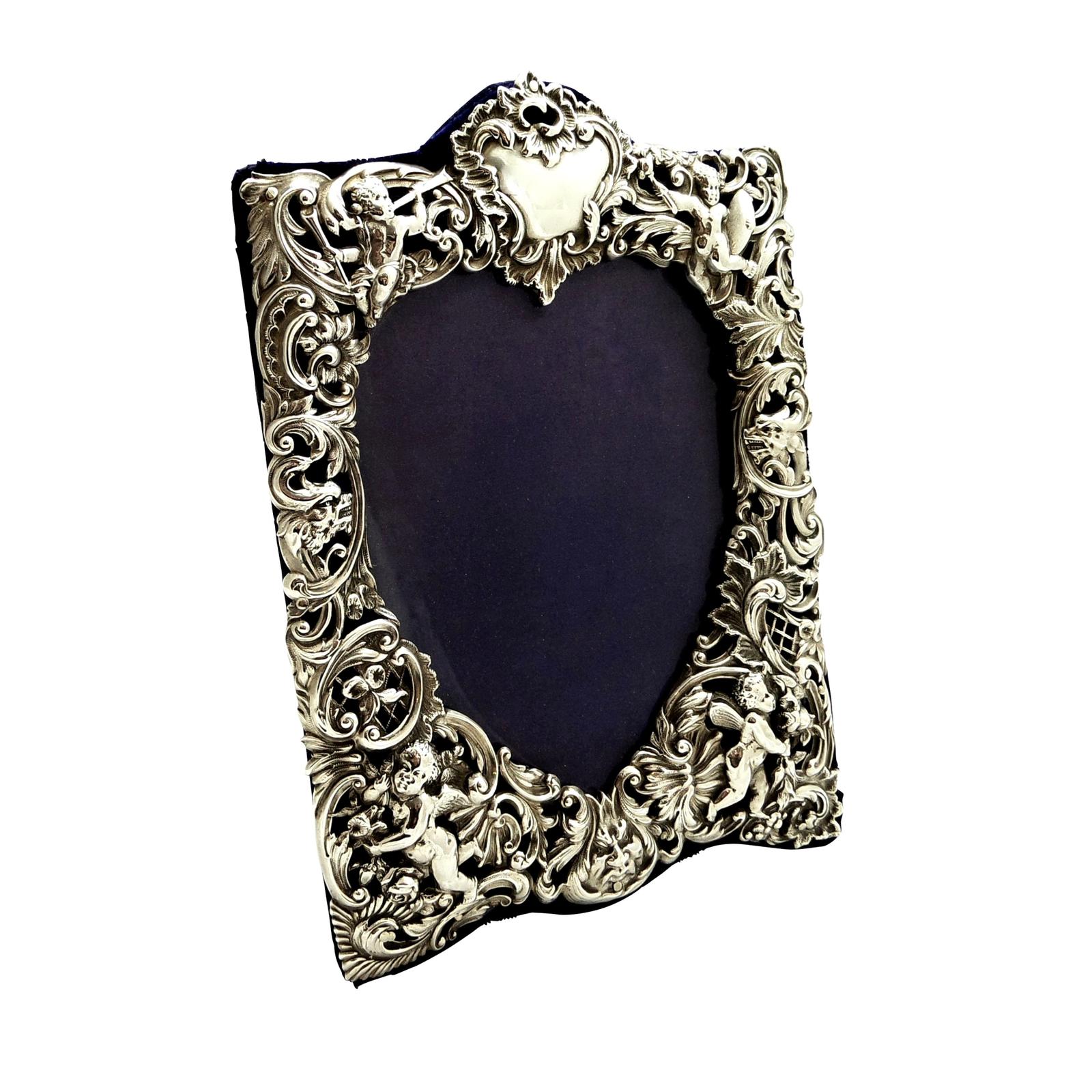 Antique Victorian Sterling Silver 1/2" Cherubs Photo Frame 1897
