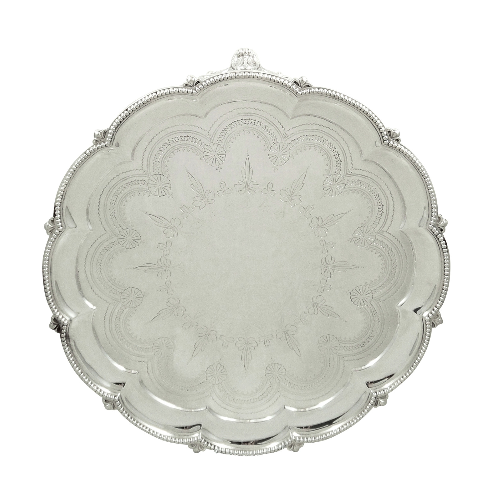 Antique Victorian Sterling Silver 12" Tray / Salver 1870