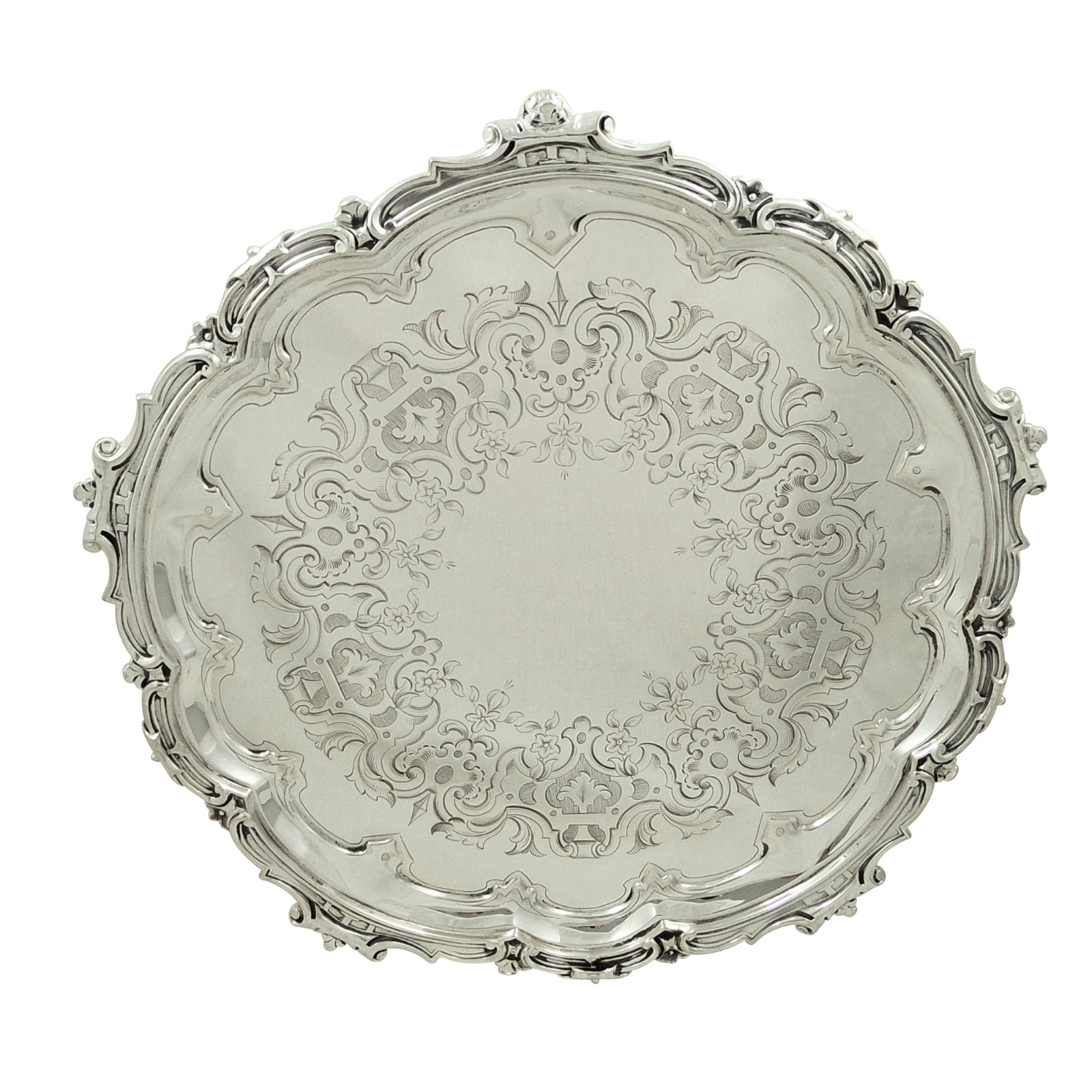 Antique Victorian Sterling Silver 12" Tray / Salver 1877
