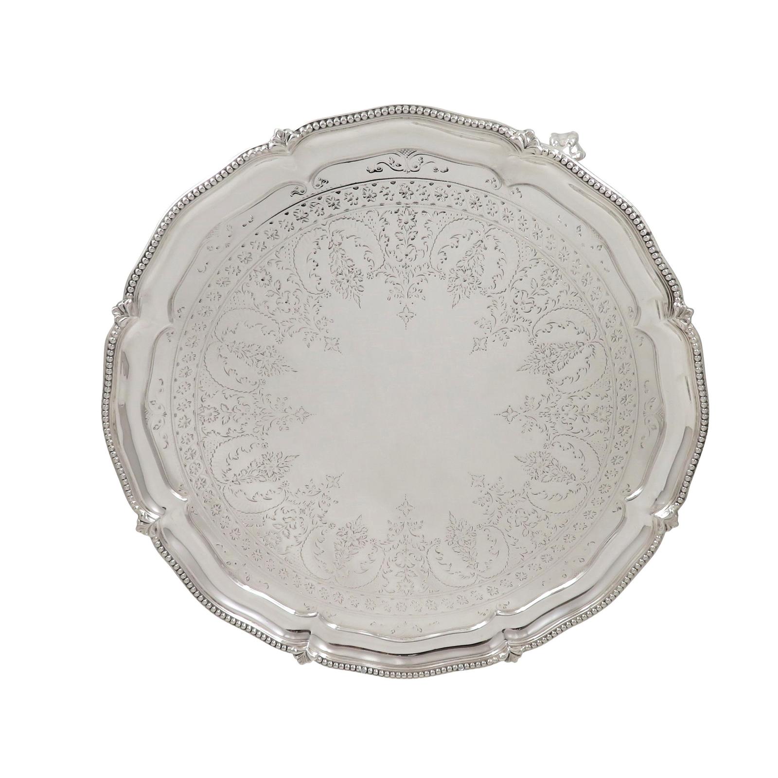 Antique Victorian Sterling Silver 12" Tray / Salver 1877
