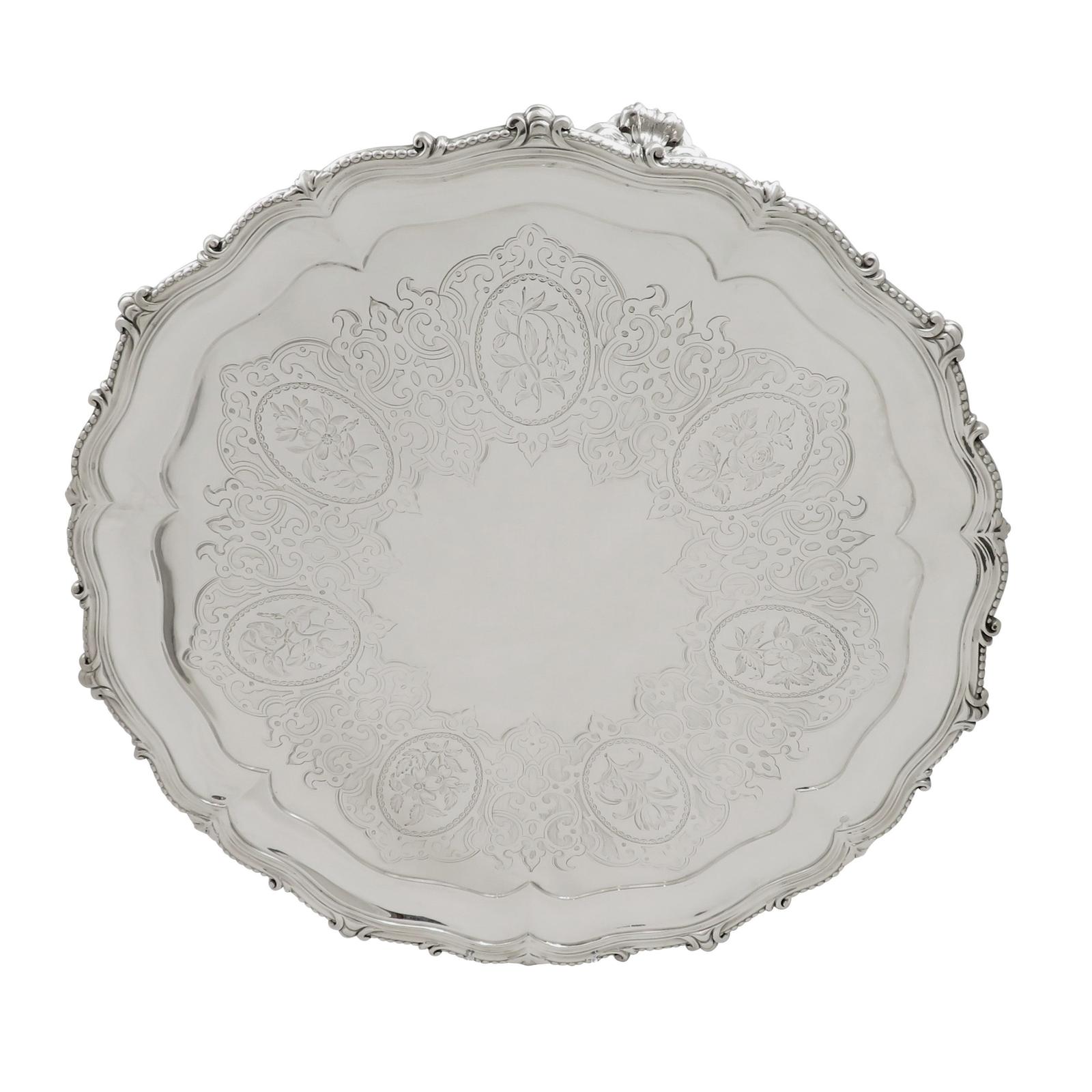 Antique Victorian Sterling Silver 14" Tray / Salver 1857