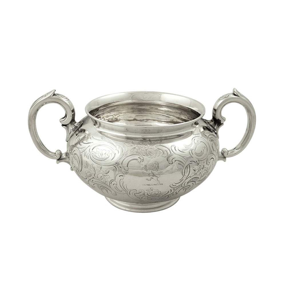 Antique Victorian Sterling Silver 2 Handle Bowl with Crest 1847