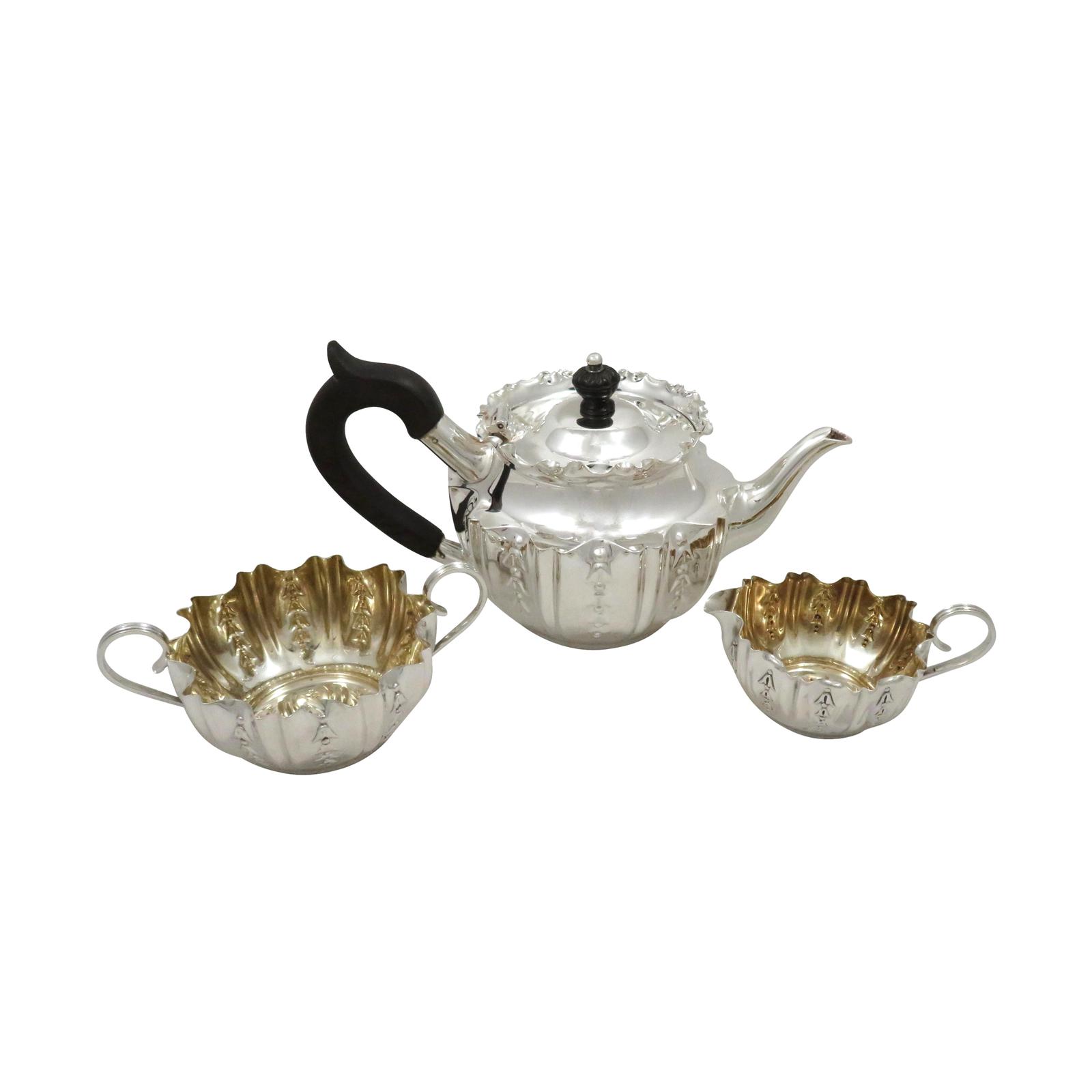 Antique Victorian Sterling Silver 3 Piece Bachelor Tea Set 1894