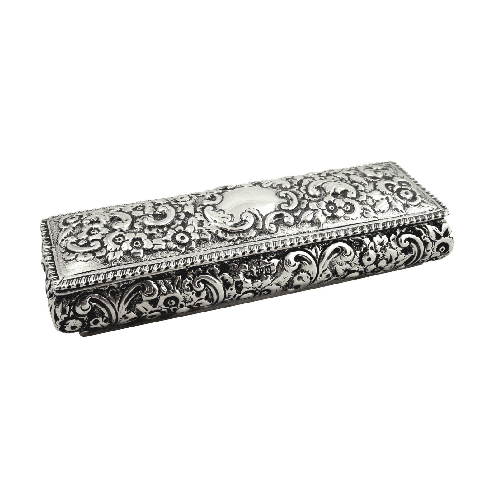 Antique Victorian Sterling Silver 5" Trinket Box - Chester 1899