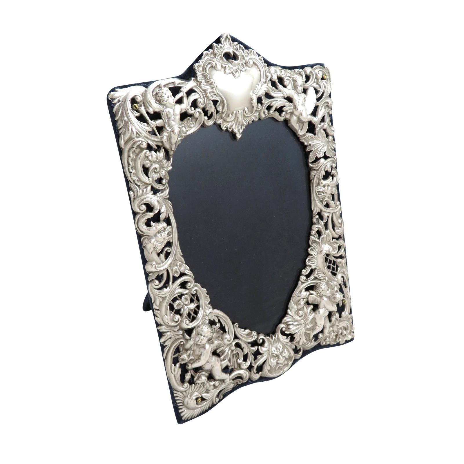 Antique Victorian Sterling Silver 7 1/2" 'Cherubs' Photo Frame 1899