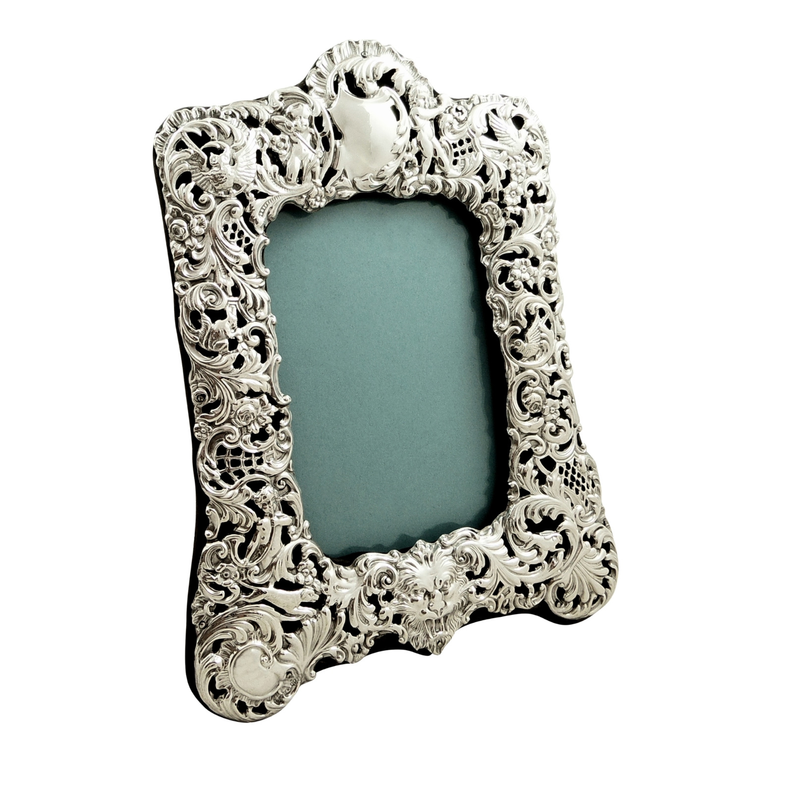Antique Victorian Sterling Silver 9' Photo Frame 1899 - Cherubs, Birds, Owl