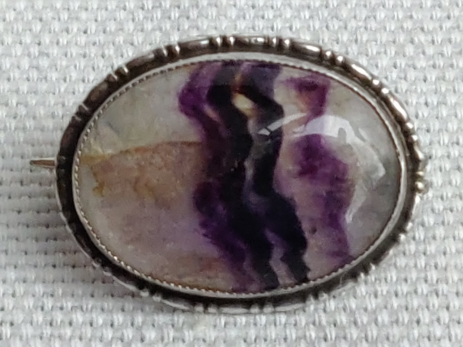 Antique Victorian Sterling Silver 935 Brooch Little Gem Rare Blue John Stone circa 1900s