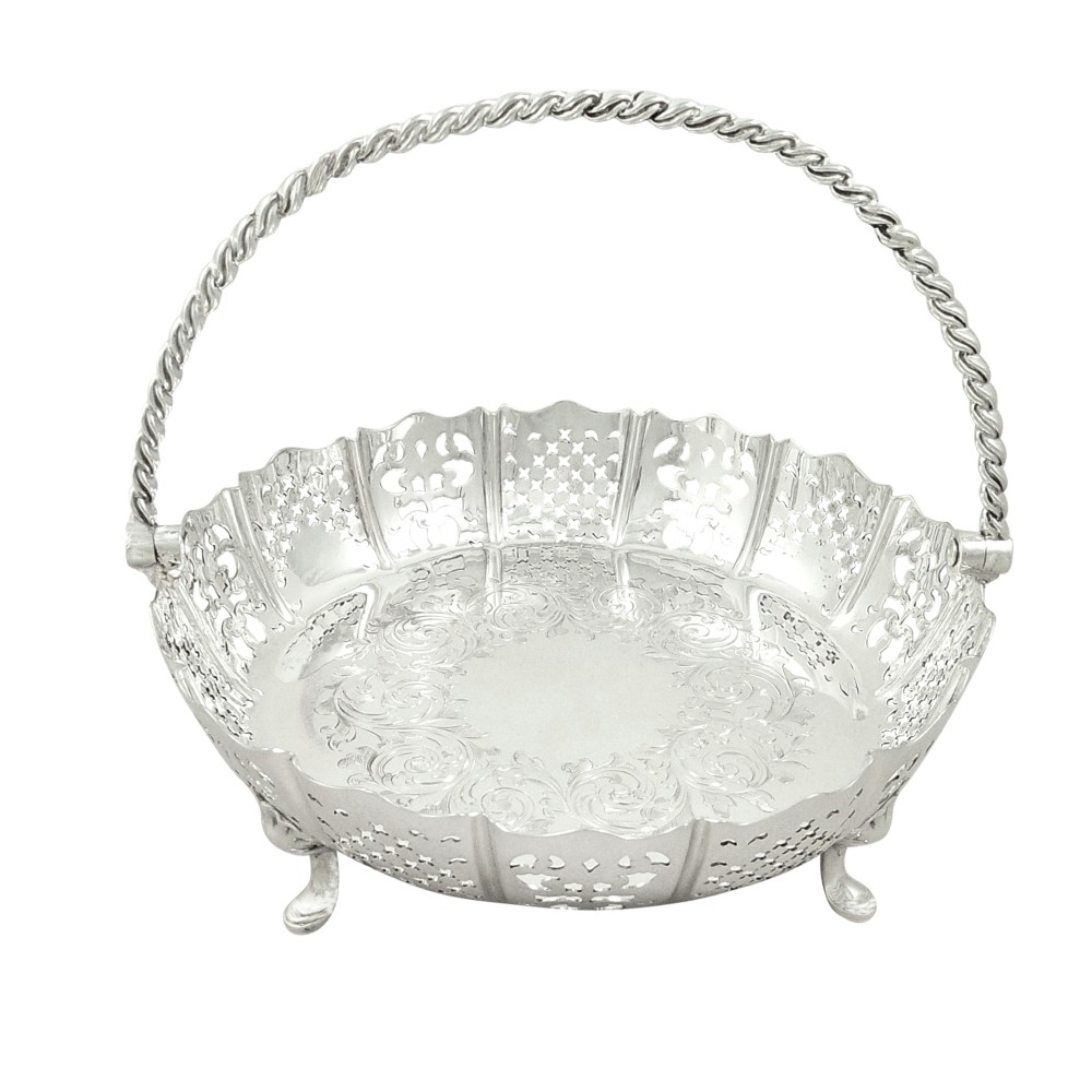 Antique Victorian Sterling Silver Basket / Dish with Swing Handle