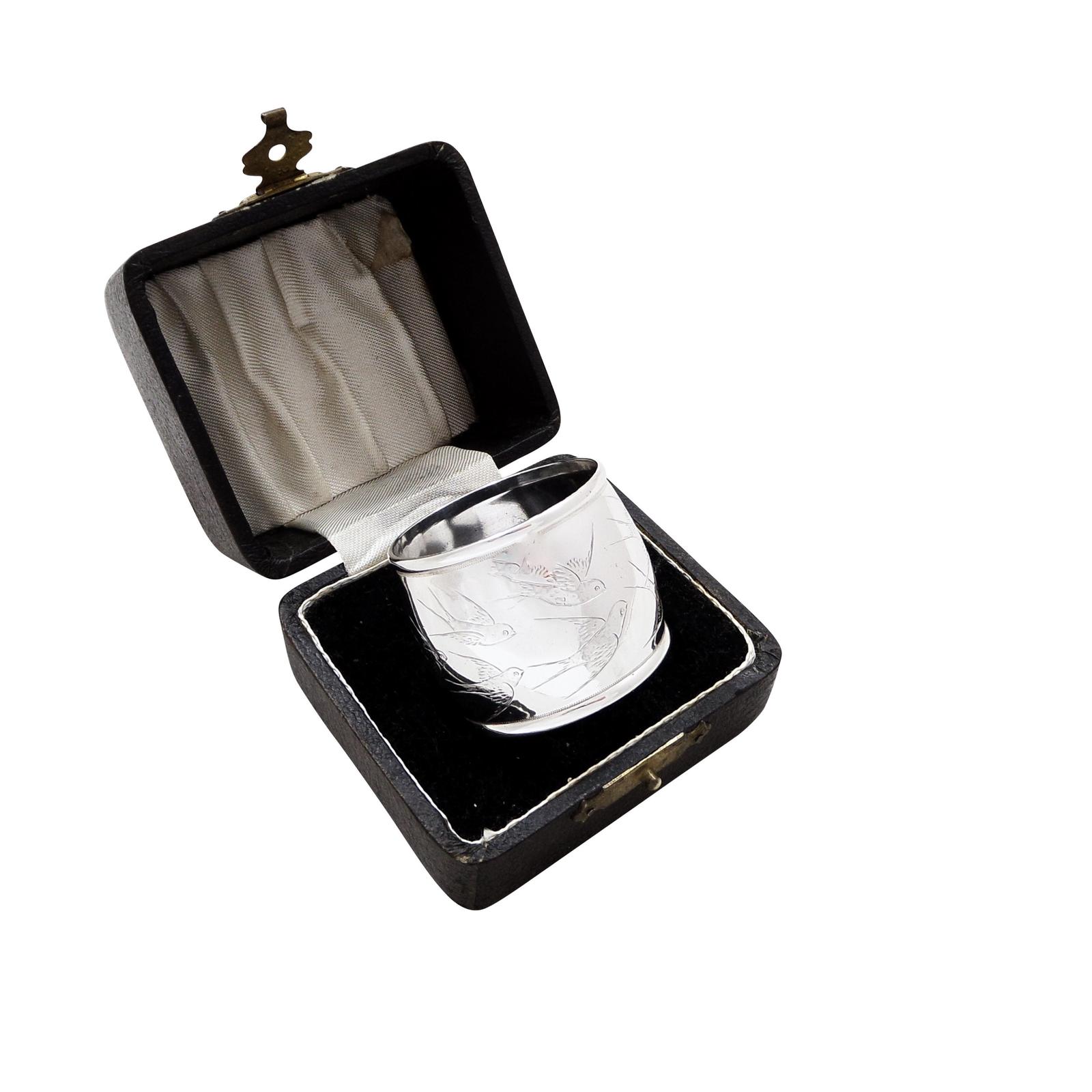Antique Victorian Sterling Silver 'Bird' Napkin Ring in Case 1887