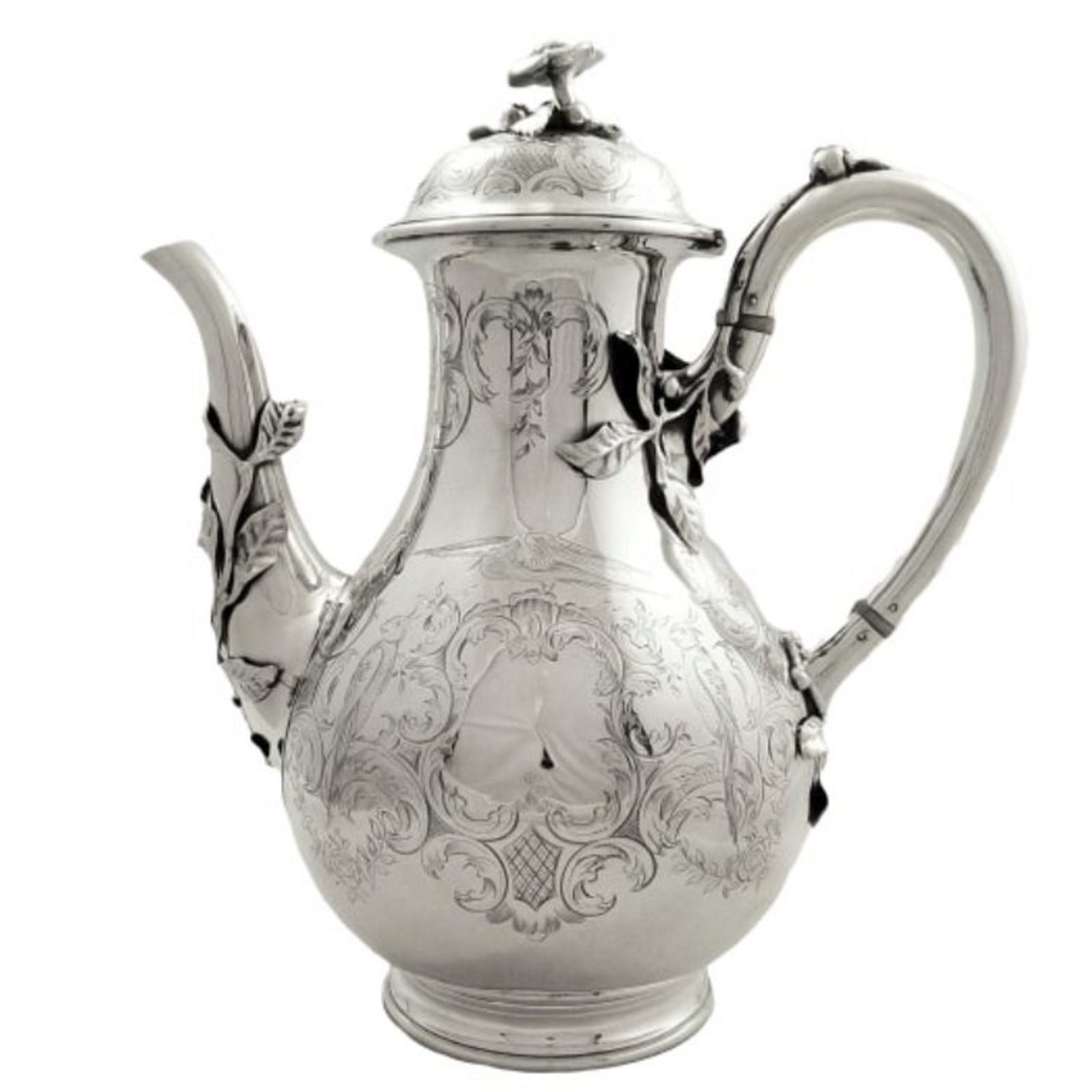 Antique Victorian Sterling Silver 'Birds' Coffee Pot 1852