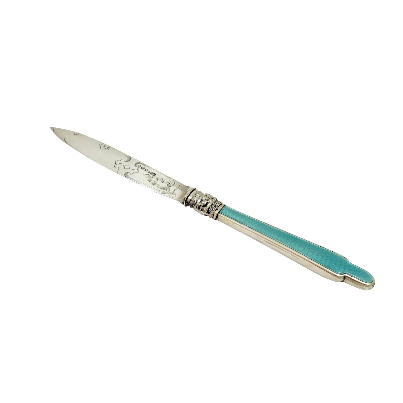 Antique Victorian Sterling Silver & Blue Enamel Letter Opener 1856