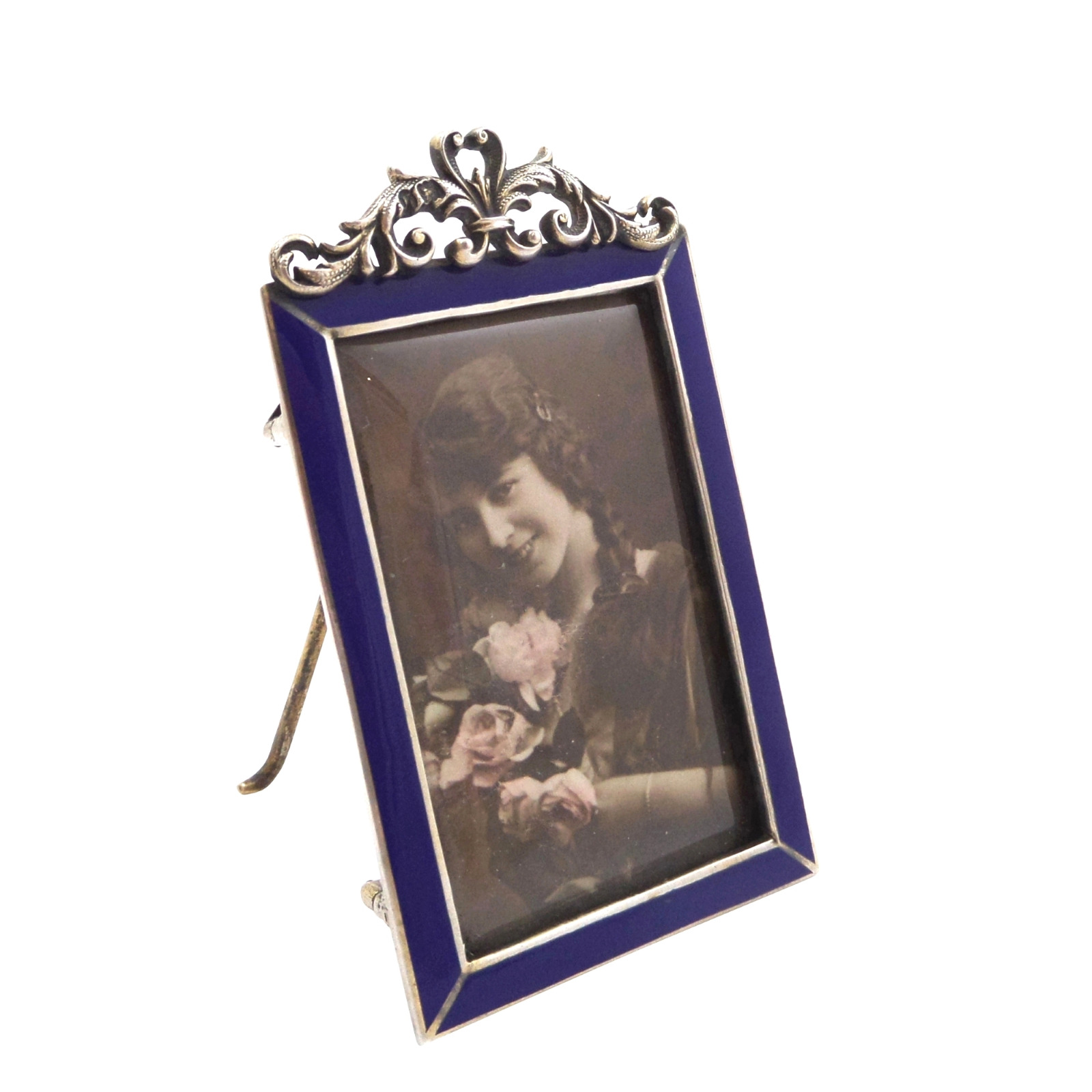Antique Victorian Sterling Silver & Blue Enamel Photo Frame 1896
