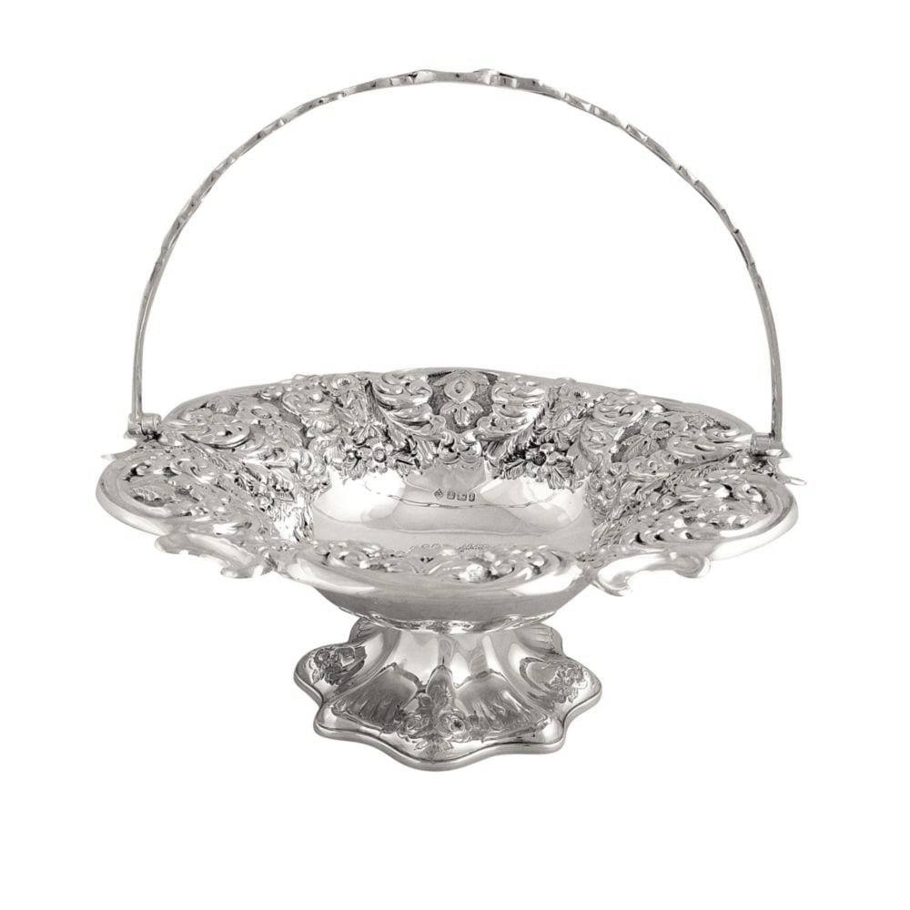 Antique Victorian Sterling Silver Bread / Cake Basket 1898