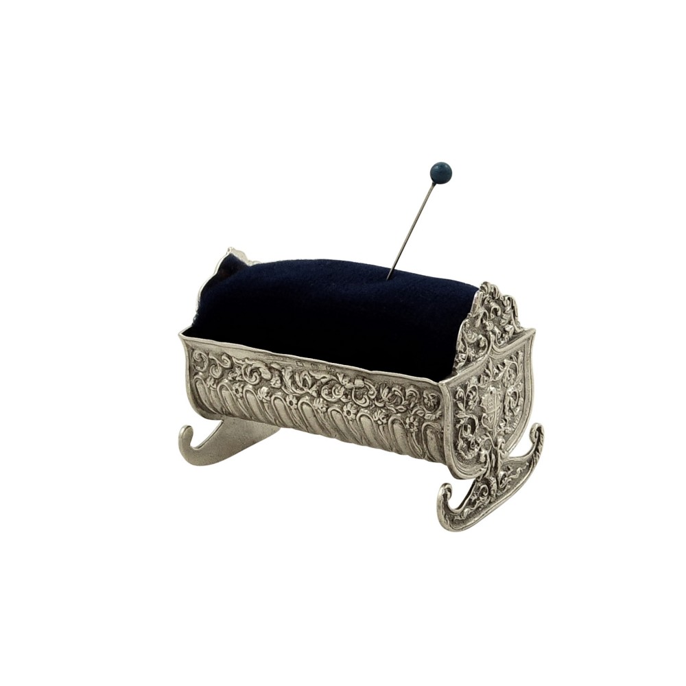 Antique Victorian Sterling Silver Cradle / Crib Pin Cushion 1896