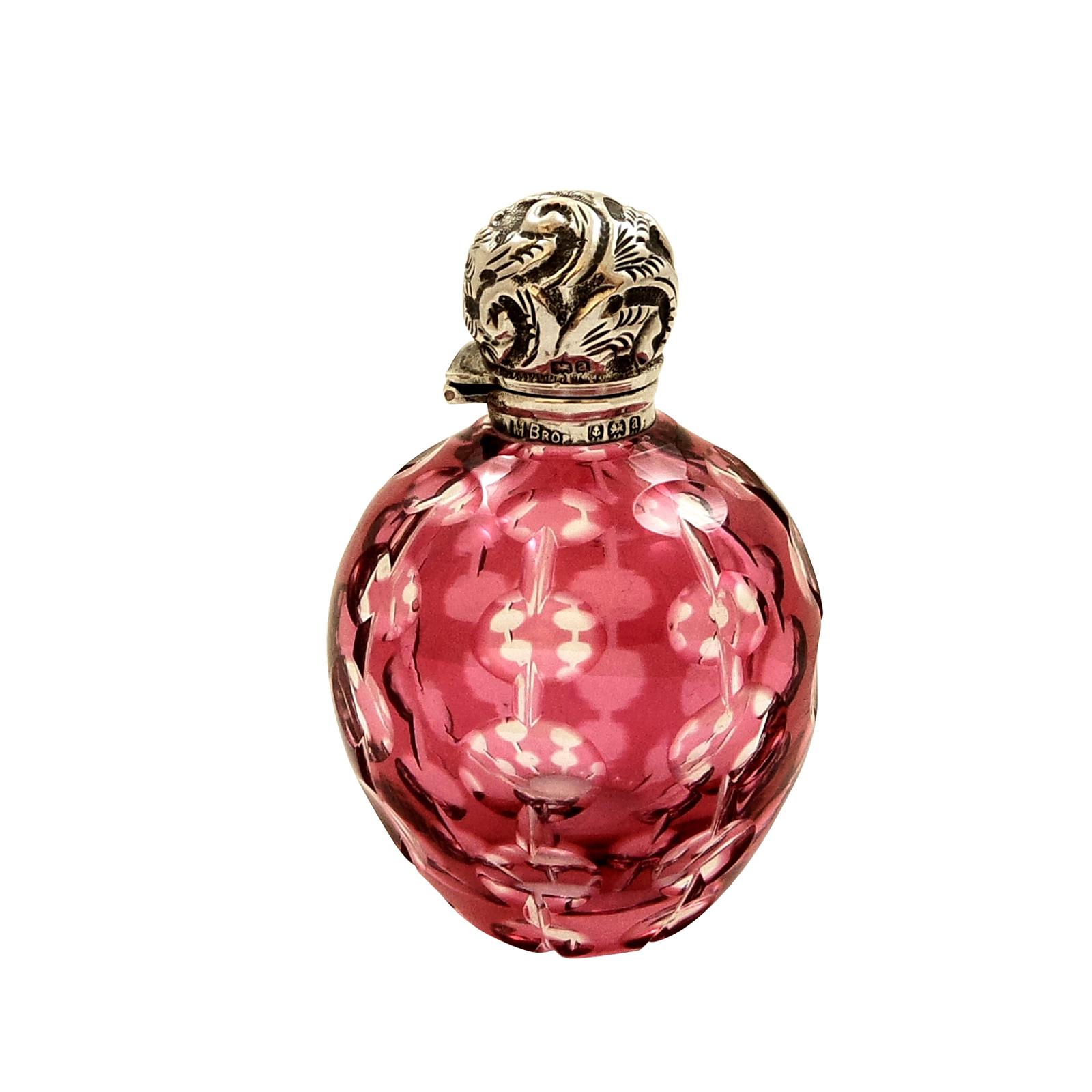 Antique Victorian Sterling Silver & Cranberry Glass Perfume / Scent Bottle 1900