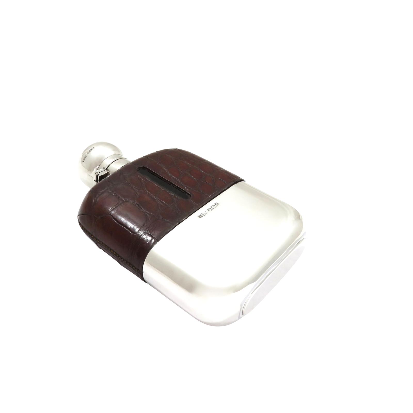 Antique Victorian Sterling Silver & Crocodile Leather Hip Flask 1899
