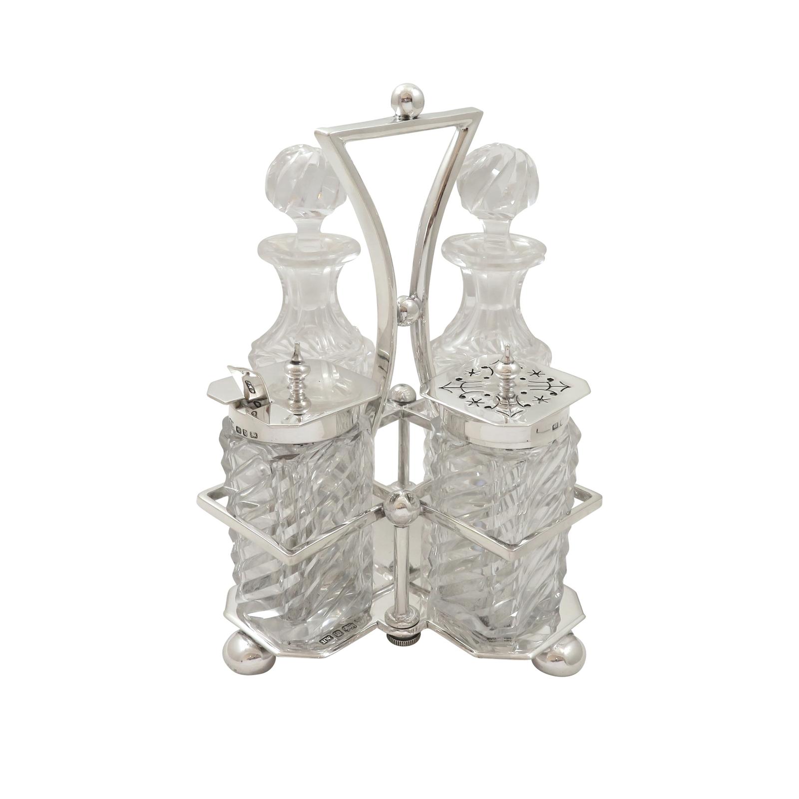 Antique Victorian Sterling Silver & Cut Glass Cruet Set 1891
