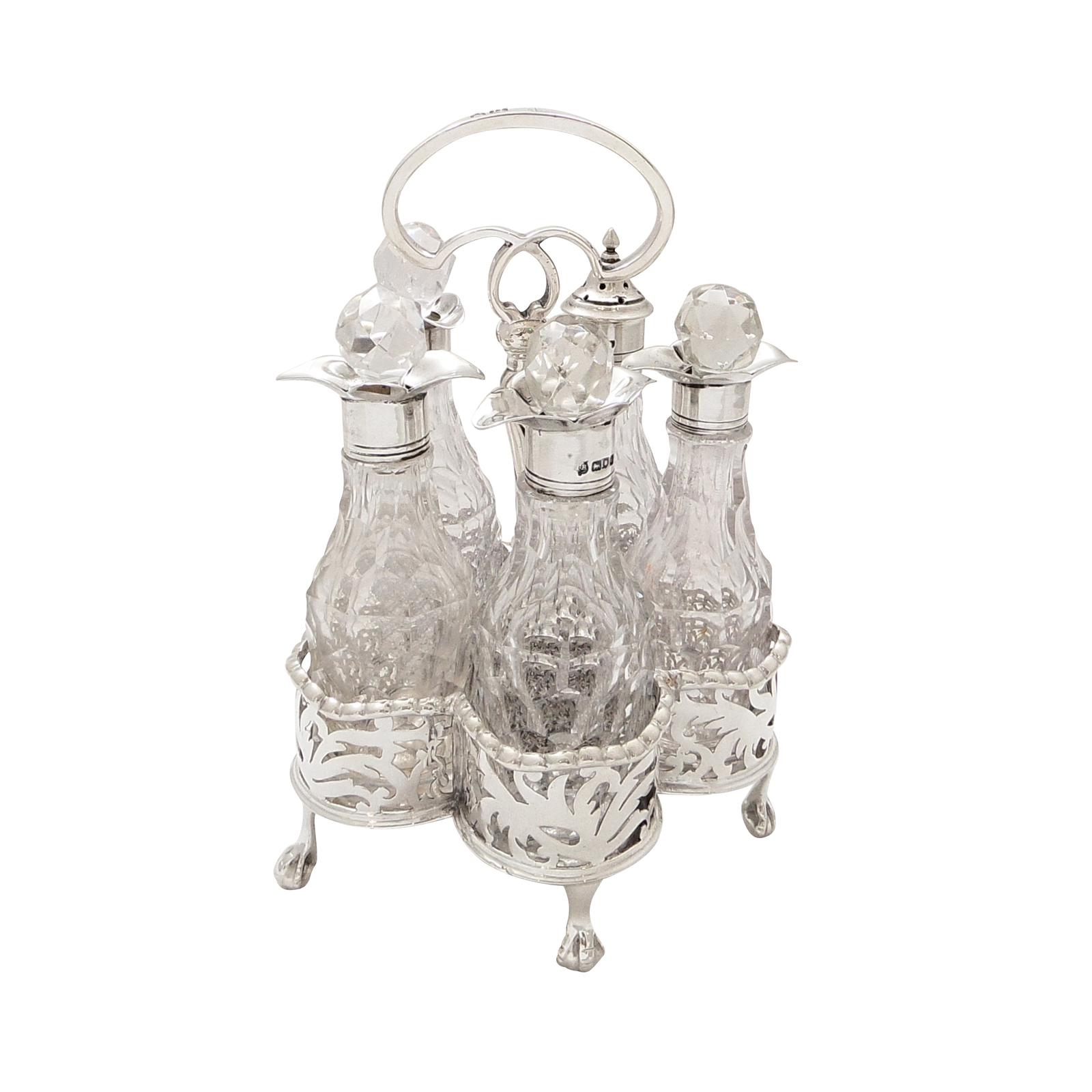 Antique Victorian Sterling Silver & Cut Glass Cruet Set 1900