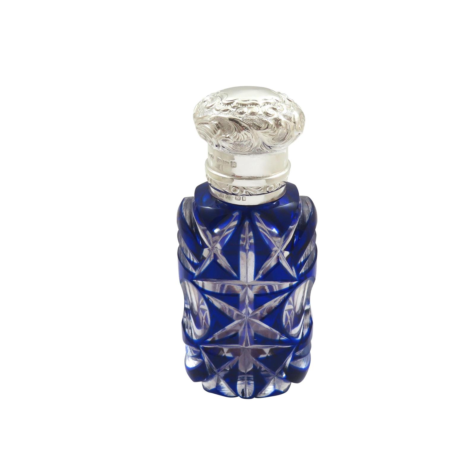 Antique Victorian Sterling Silver & Cut Glass Scent / Perfume Bottle 1893