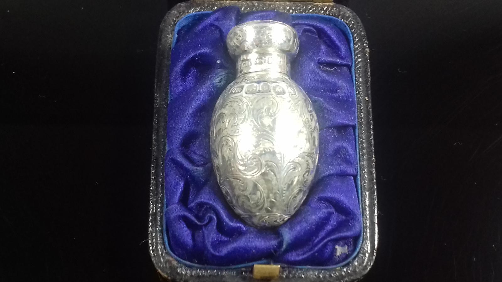 Antique Victorian Sterling Silver Dainty Egg Shape Scent Bottle Boxed Charles May