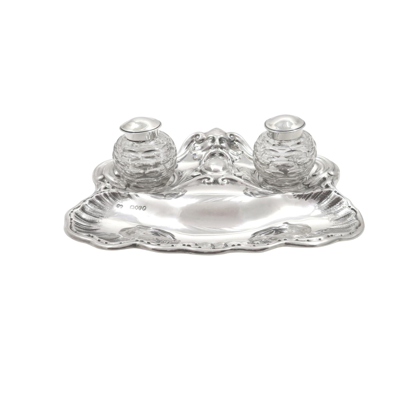 Antique Victorian Sterling Silver Double Inkstand 1880