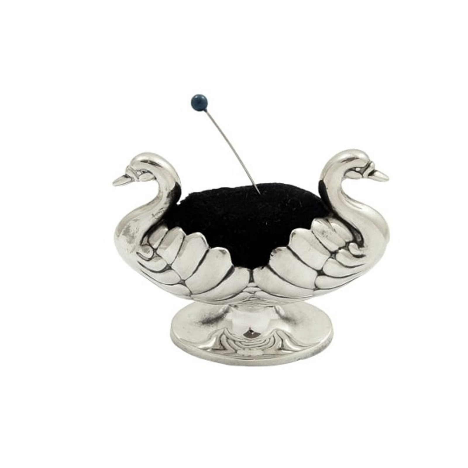 Antique Victorian Sterling Silver Double Swan Pin Cushion 1895