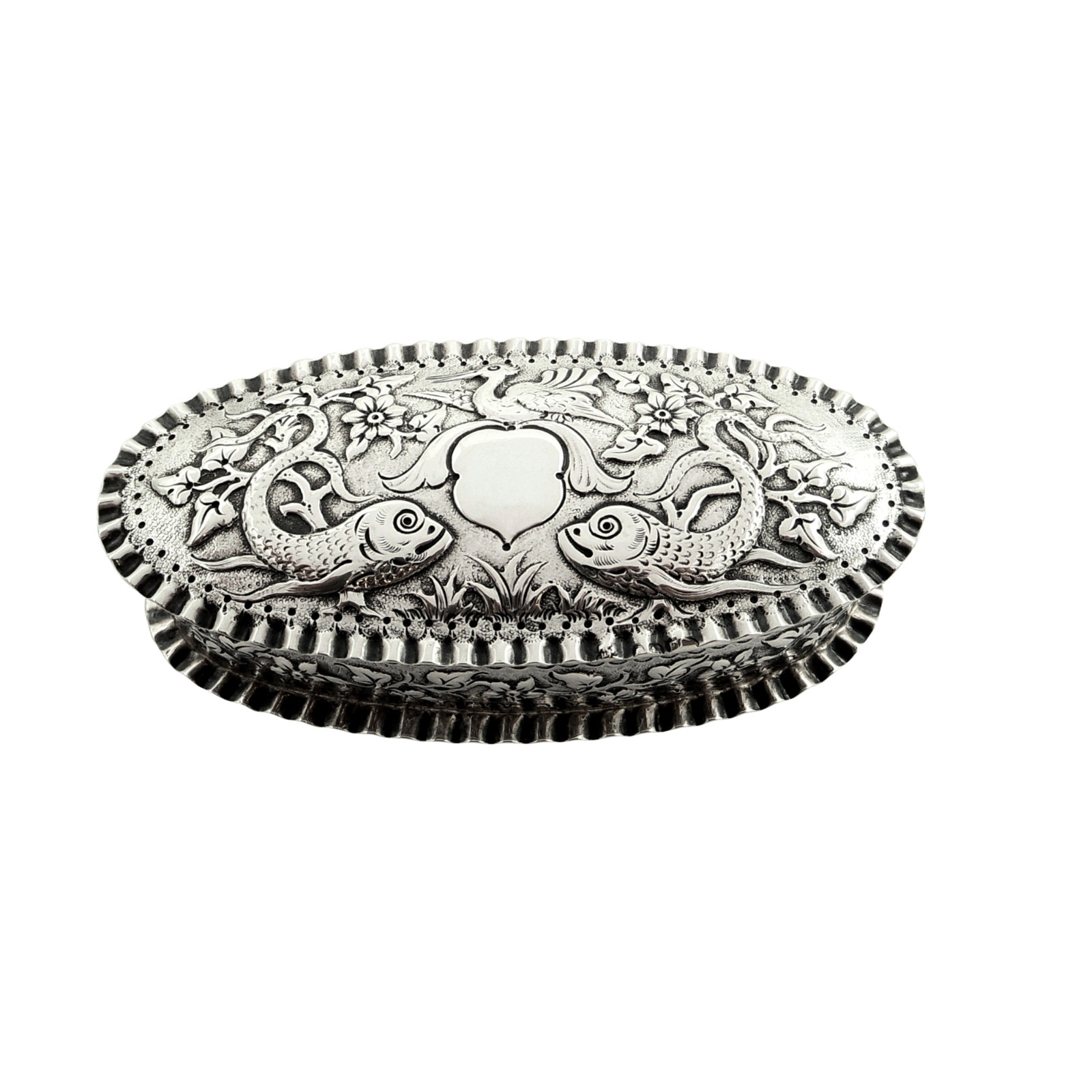 Antique Victorian Sterling Silver 'Fish' Trinket Box 1881