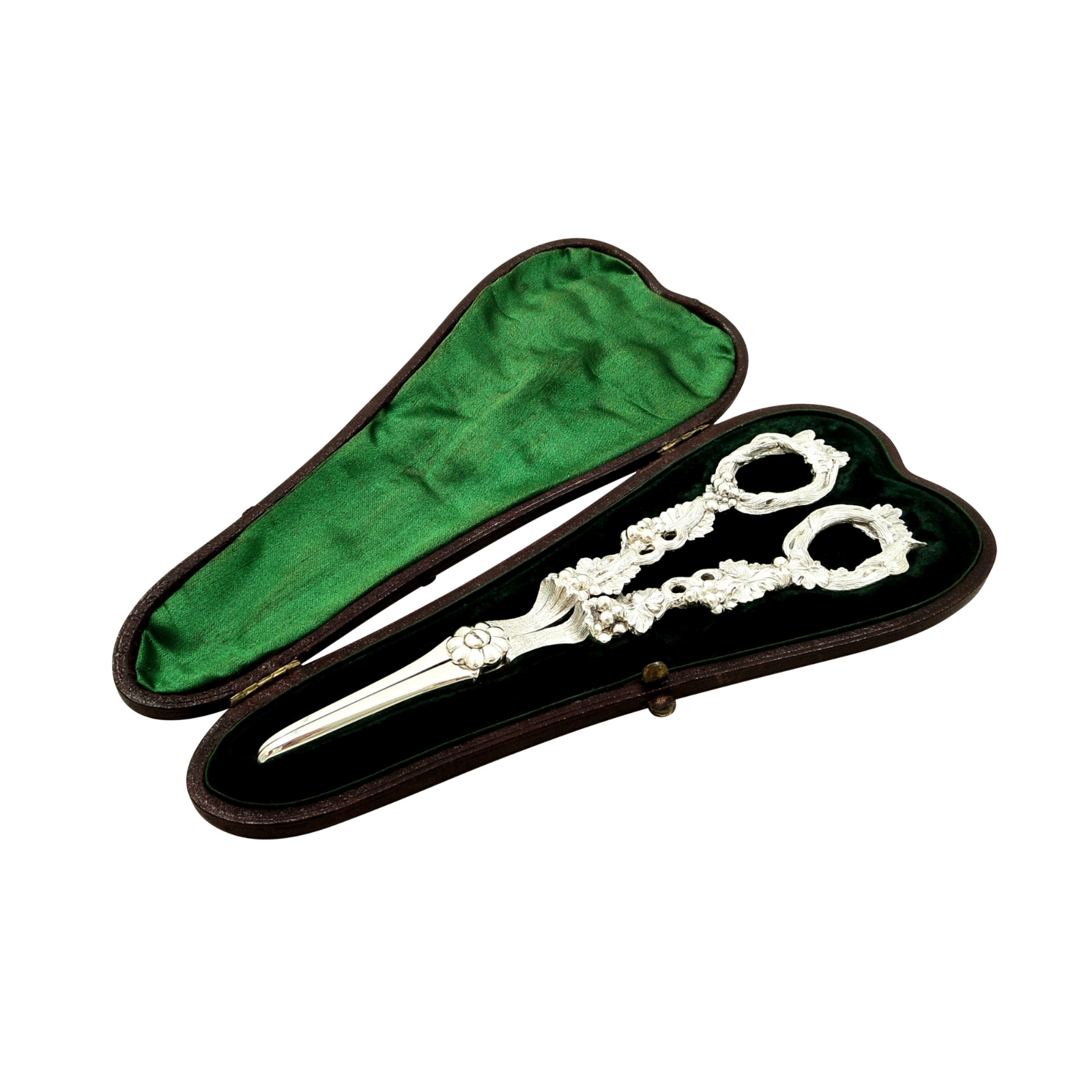 Antique Victorian Sterling Silver Grape Scissors / Shears in Case 1871