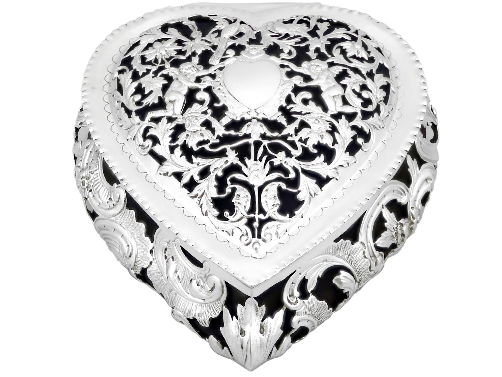 Antique Victorian Sterling Silver Heart Jewellery Box 1889 (1 of 13)