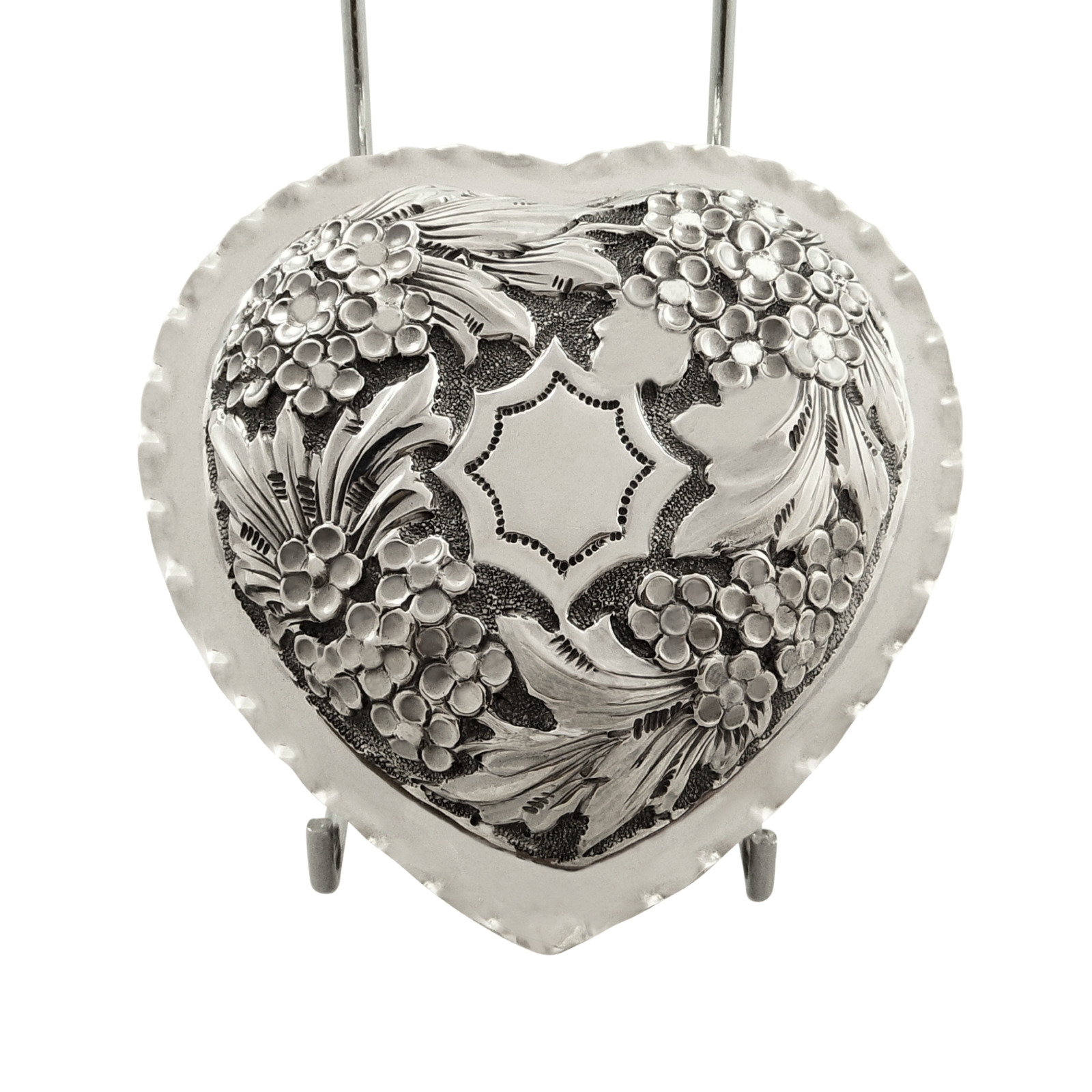 Antique Victorian Sterling Silver Heart Trinket Box 1898