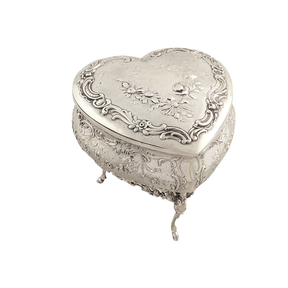 Antique Victorian Sterling Silver Heart Trinket Box