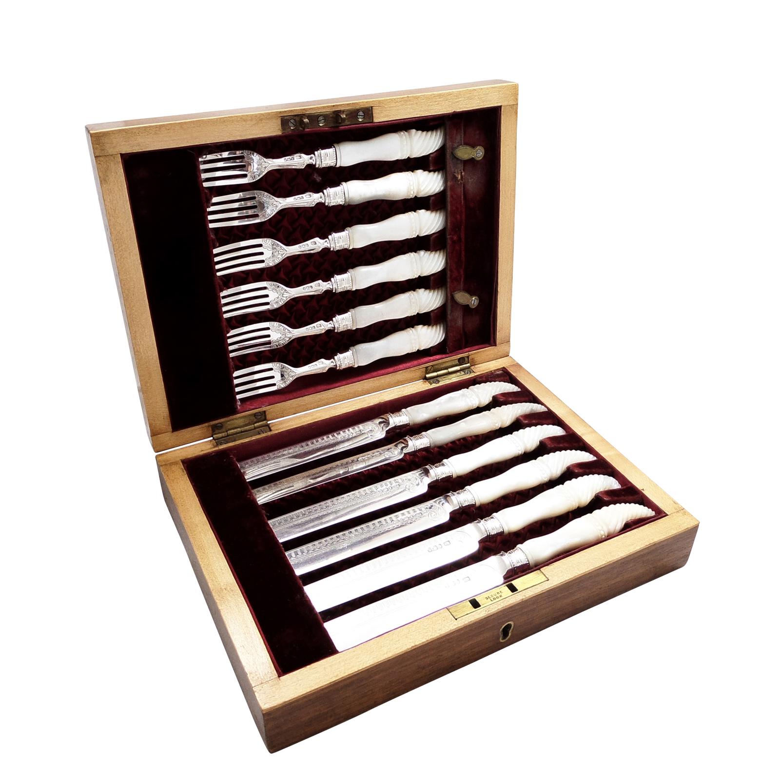 Antique Victorian Sterling Silver & Mother of Pearl Dessert Cutlery Set 1897