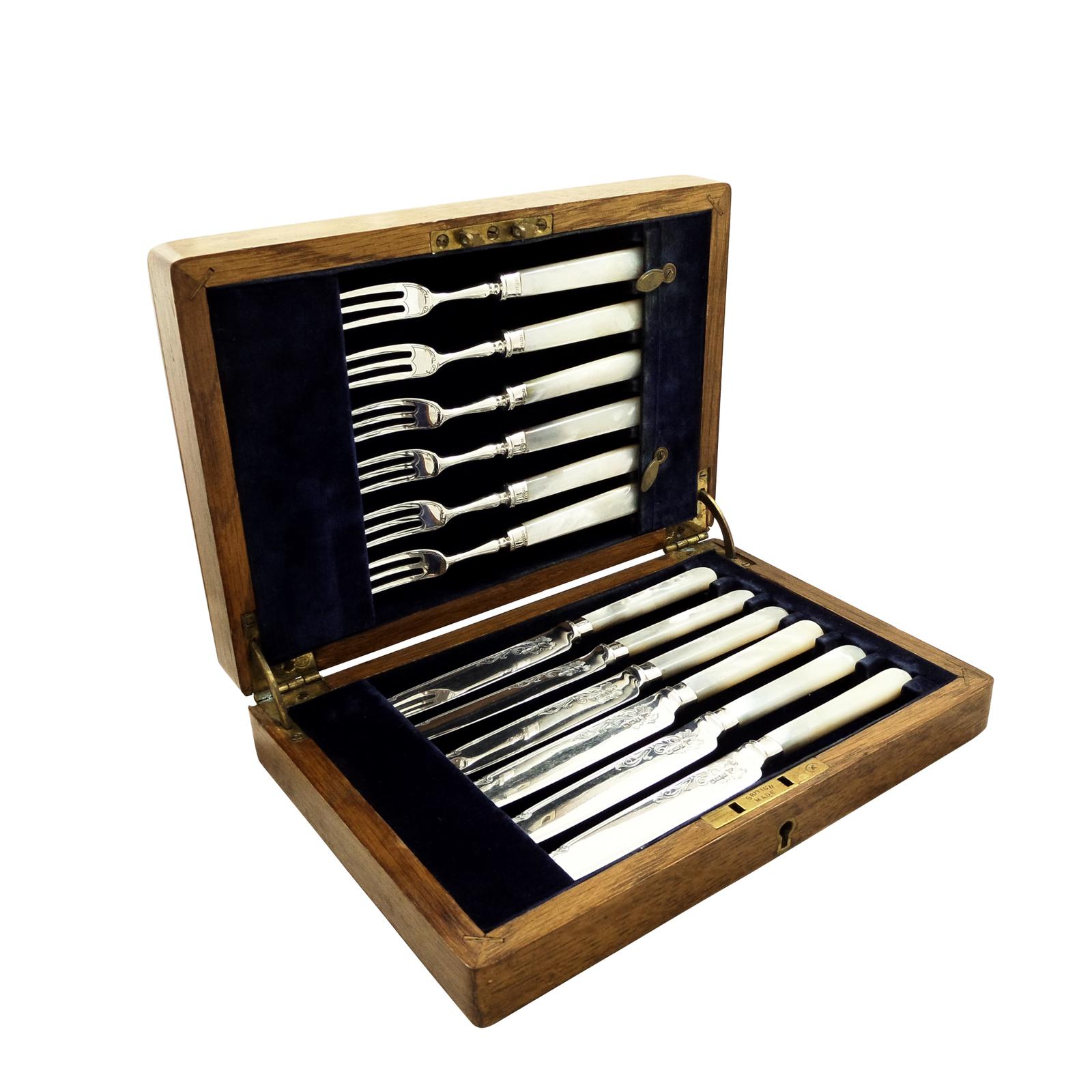 Antique Victorian Sterling Silver & Mother of Pearl Dessert Cutlery Set 1898