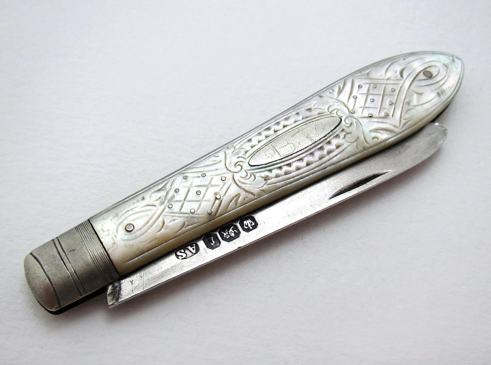 Antique Victorian Sterling Silver & Mother of Pearl Folding Fruit Penknife, Sheffield 1895 (1 of 8)