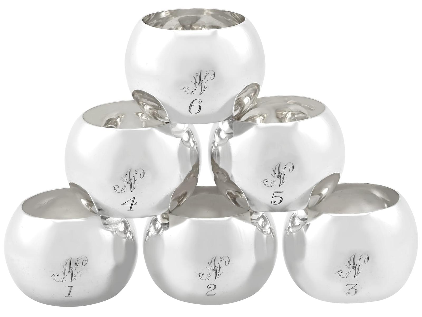 Antique Victorian Sterling Silver Numbered Napkin Rings Set of Six (1 of 9)