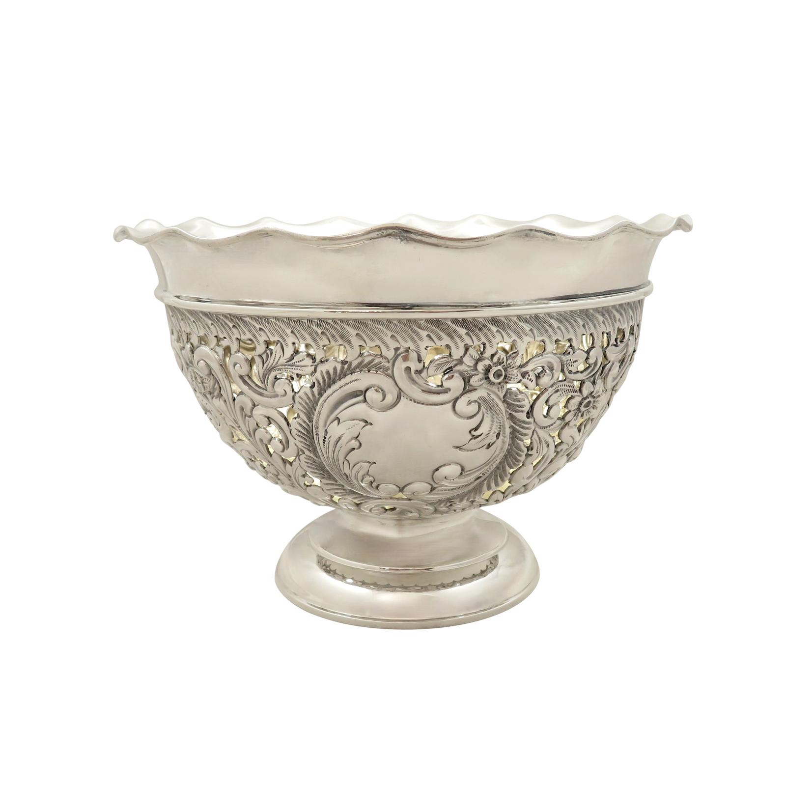 Antique Victorian Sterling Silver Pierced Bowl on Pedestal Foot 1899