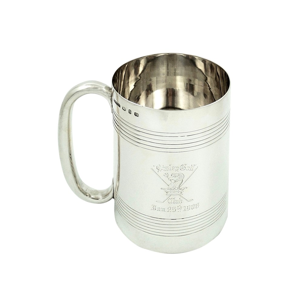 Antique Victorian Sterling Silver Pint Mug / Tankard - Disley Golf Club 1898