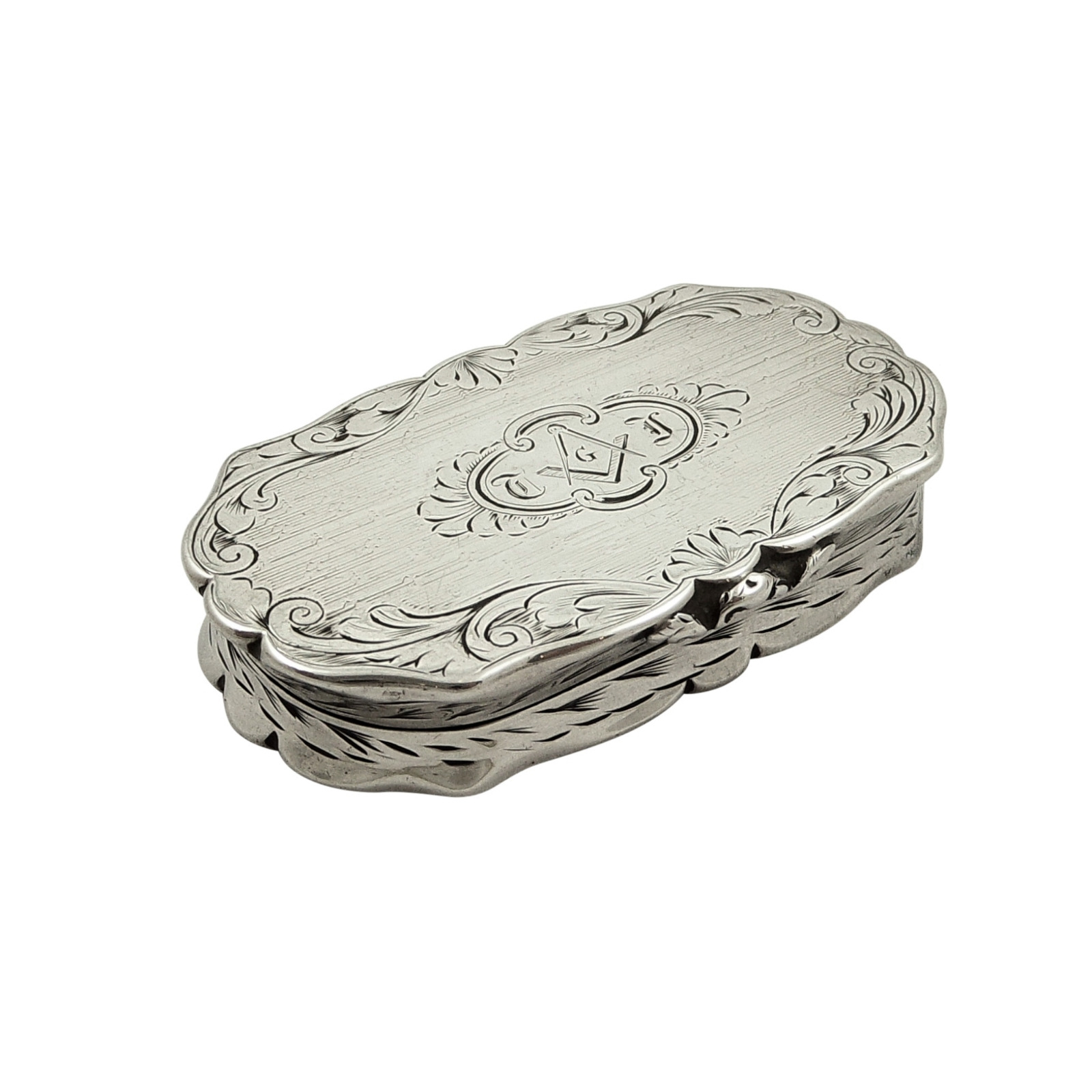 Antique Victorian Sterling Silver Snuff Box 1847 - Masonic