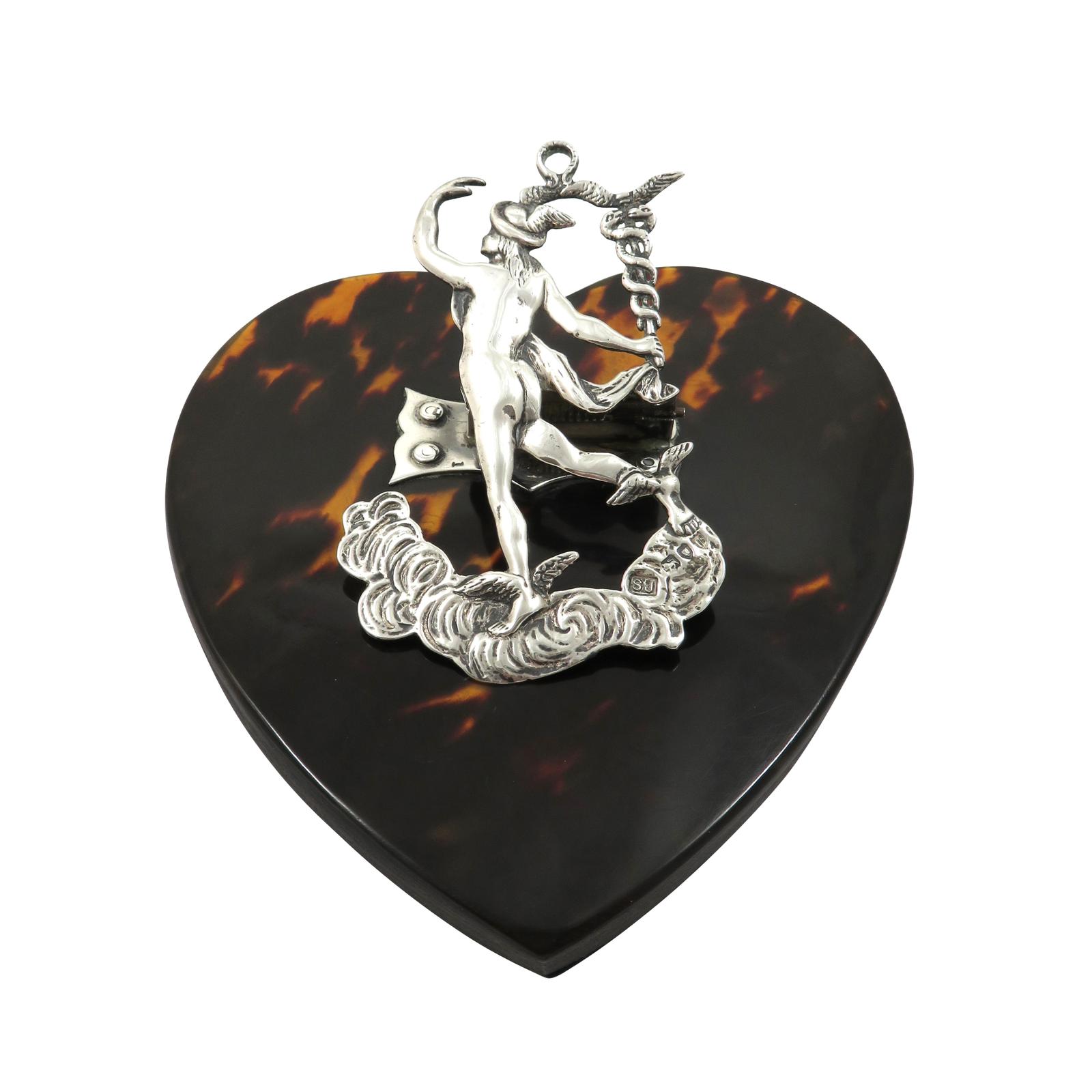 Antique Victorian Sterling Silver & Tortoiseshell 'Hermes' Desk Top Letter Clip 1895