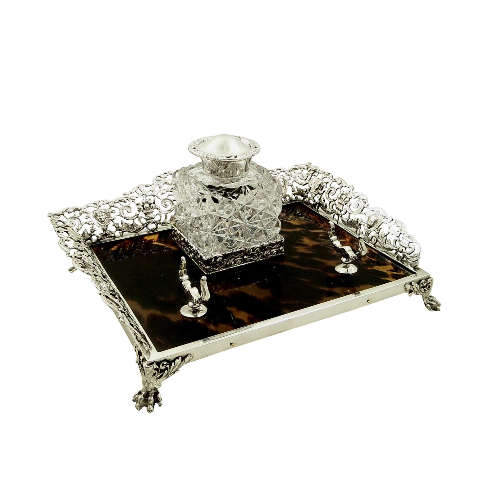 Antique Victorian Sterling Silver & Tortoiseshell Inkstand 1899