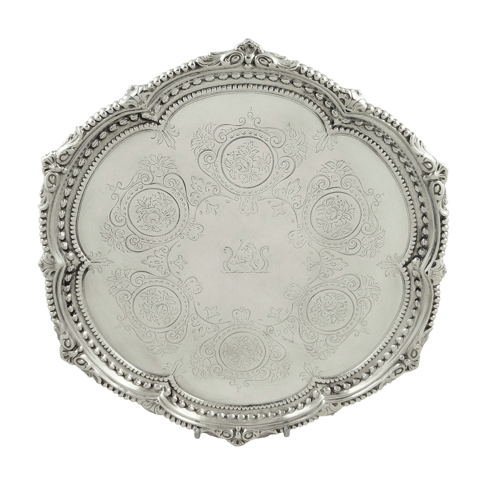 Antique Victorian Sterling Silver Tray / Salver 1879