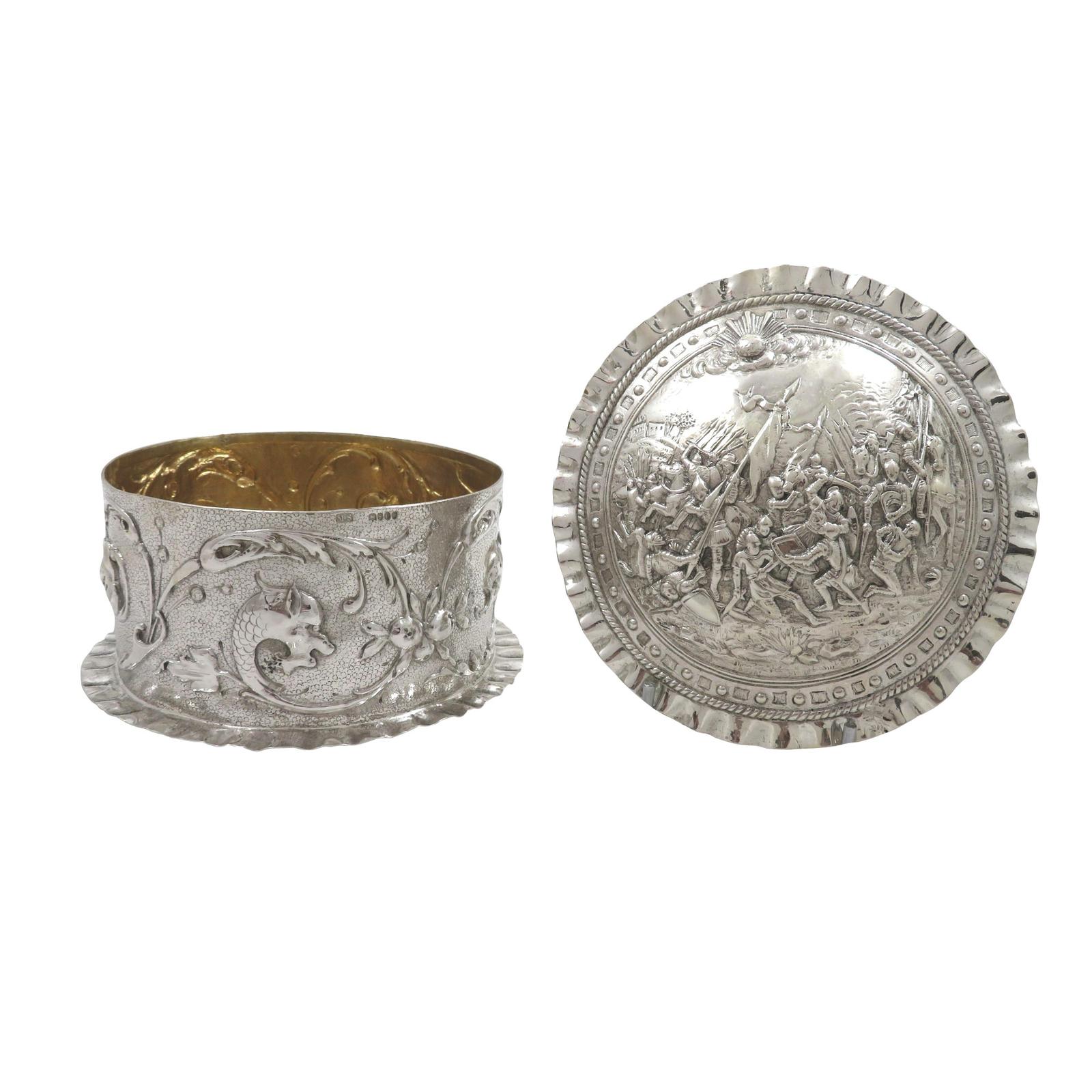 Antique Victorian Sterling Silver Trinket / Table Box 1893 - Battle Scene